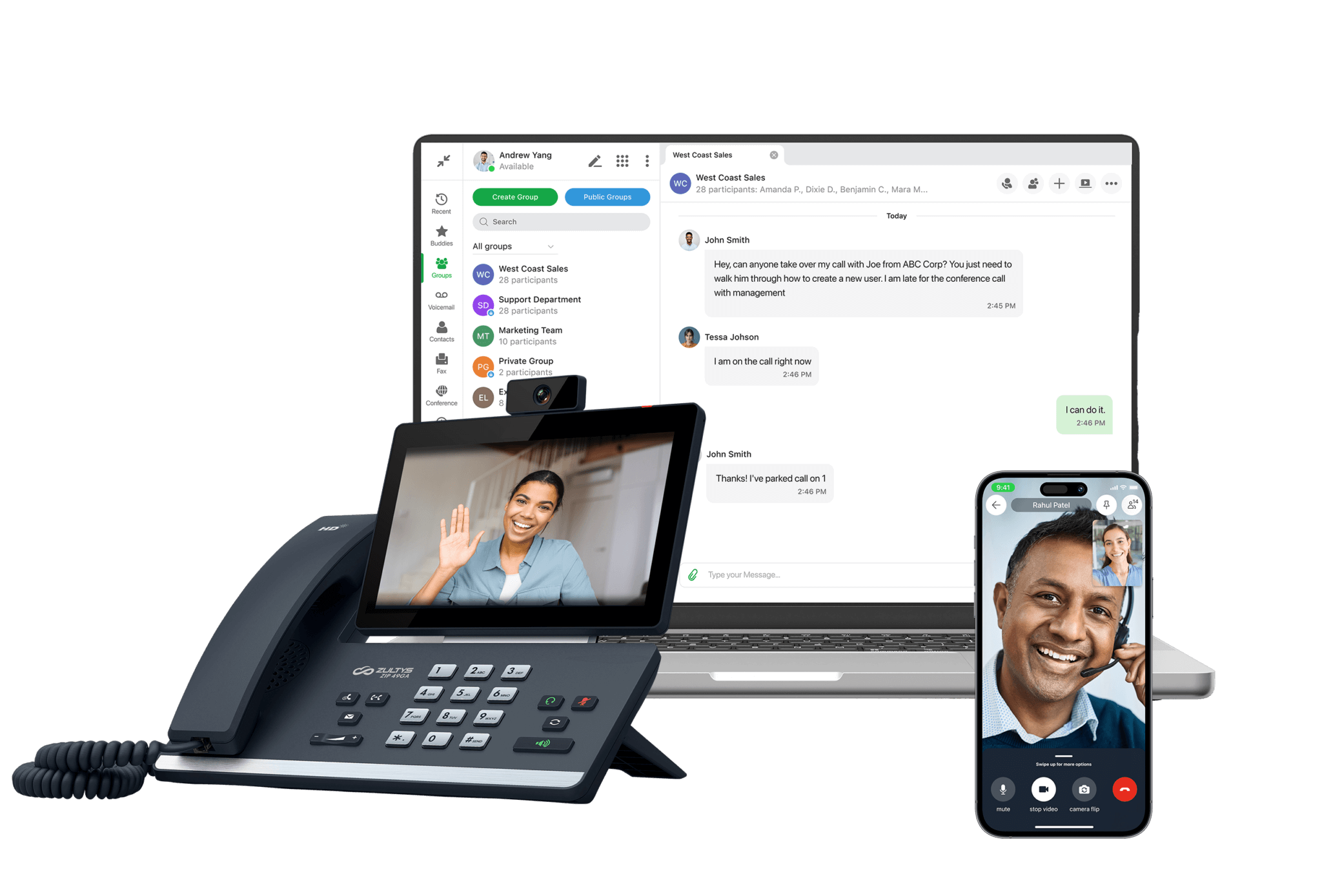 Our unified communications solutions offer a suite of applications that allow employees to work efficiently through mobility, unified messaging, presence management, desktop integration, softphone, instant messaging, chat, web, audio, and video conferencing.